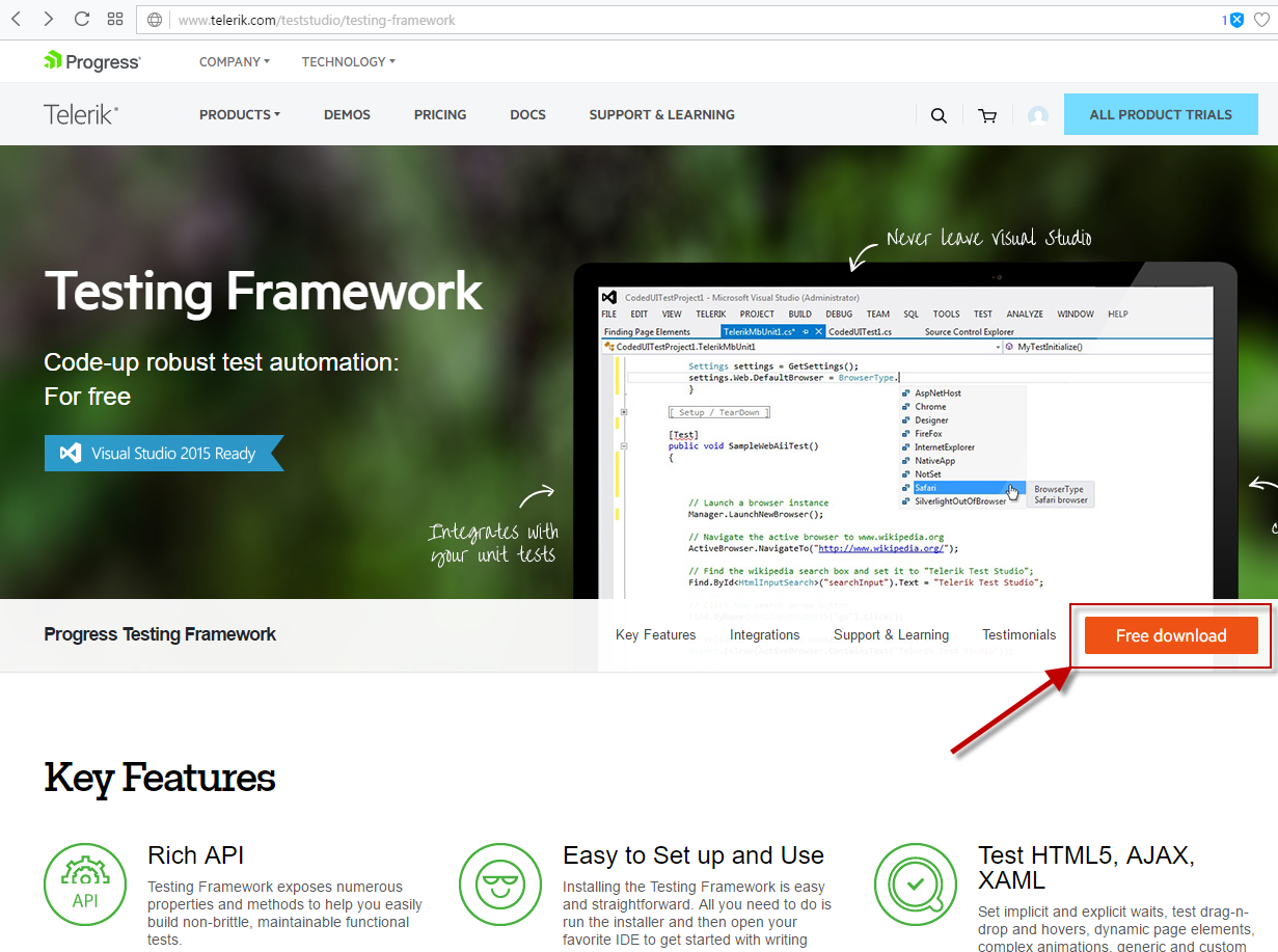 Also, please note that I am trying to install the Test Framework (free version) not Test Studio.