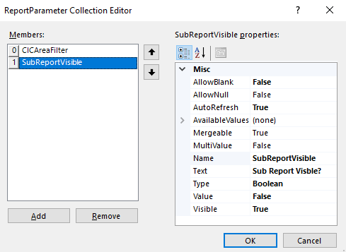 I am using the HTML5 viewer under .Net 6. I have 2 parameters CICAreaFilter and SubReportVisible.