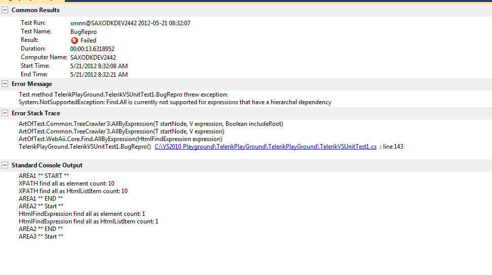 I have a HtmlFindExpression that I belive should do the same as a XPATH I have created, the problem is that my XPATH works but my HtmlFindExpression only find 1 item(Expected 10). I have created some test code below and put some areas around the blocks.