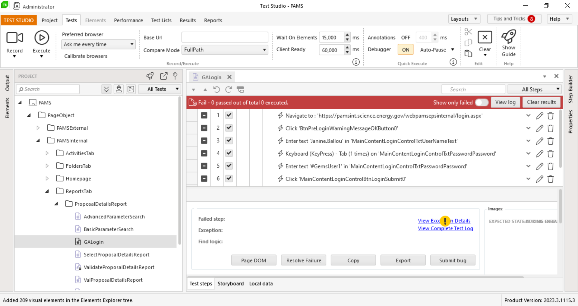 [Solved] Previously working tests are no longer executing successfully. See below screenshot. Also, if I attempt to make a change and save, Test Studio automatically closes and changes are not saved.