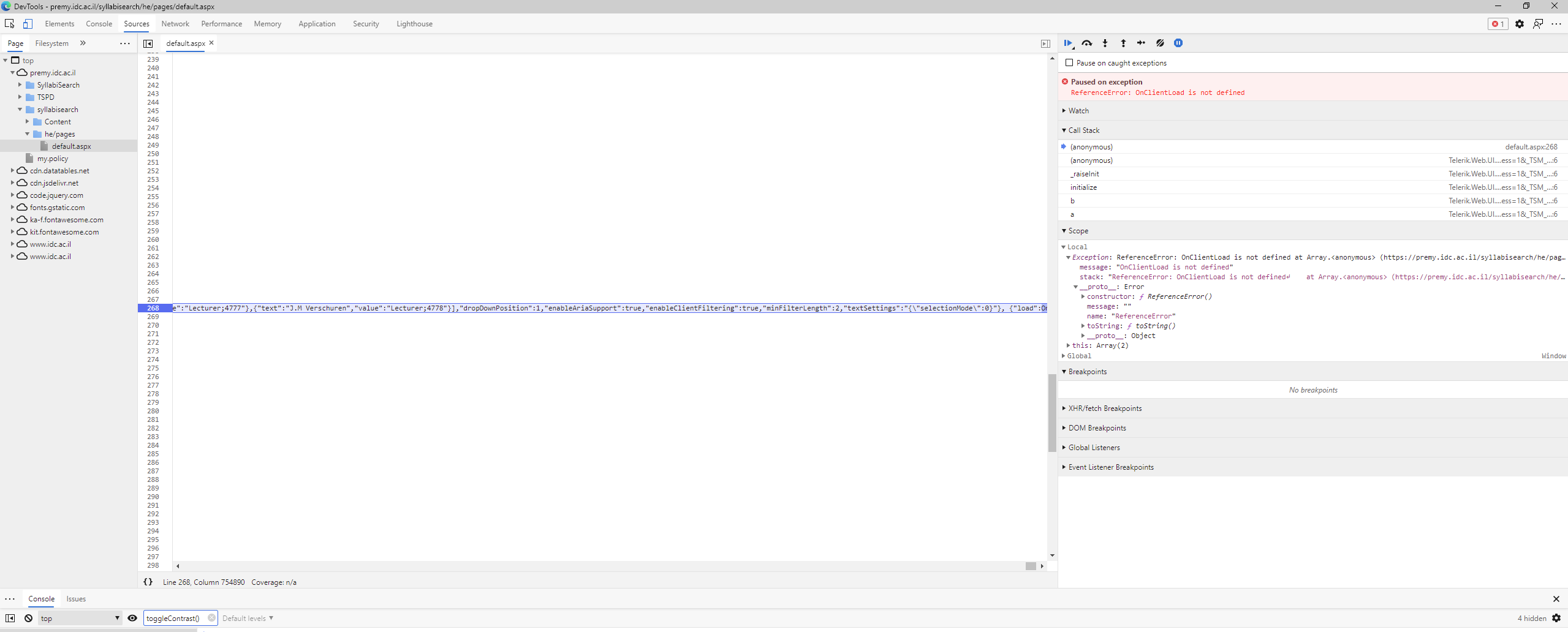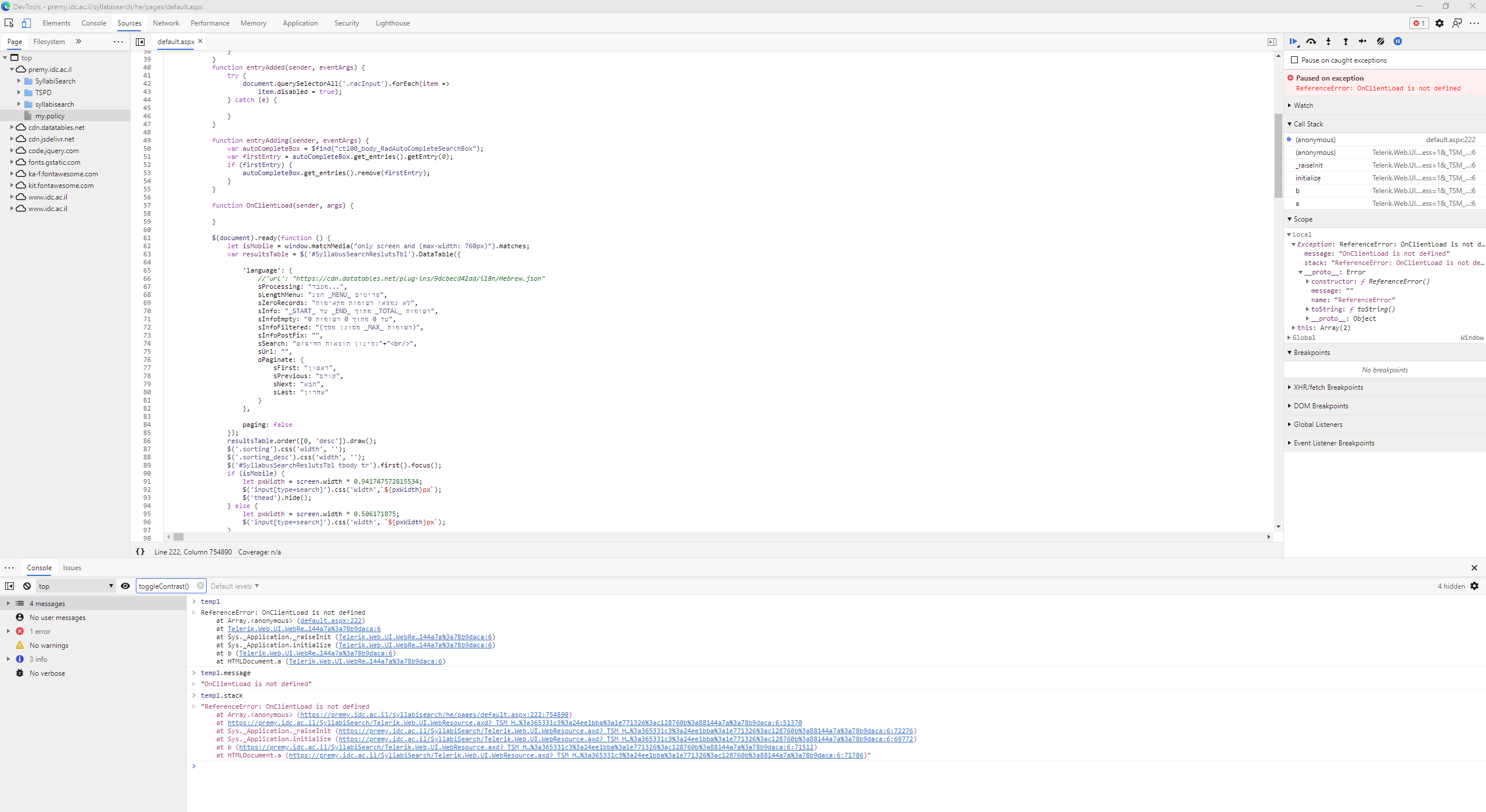 "ReferenceError: OnClientLoad is not defined at Array.<anonymous> (https://my-domain.com/syllabisearch/he/pages/default.aspx:272:176322) at https://my-domain.com/syllabisearch/Scripts/WebForms/MsAjax/MicrosoftAjax.js:6:51370 at Sys._Application._raiseInit (https://my-domain.com/syllabisearch/Scripts/WebForms/MsAjax/MicrosoftAjax.js:6:72276) at Sys._Application.initialize (https://my-domain.com/syllabisearch/Scripts/WebForms/MsAjax/MicrosoftAjax.js:6:69772) at b (https://my-domain.com/syllabisearch/Scripts/WebForms/MsAjax/MicrosoftAjax.js:6:71512) at HTMLDocument.a (https://my-domain.com/syllabisearch/Scripts/WebForms/MsAjax/MicrosoftAjax.js:6:71786)"