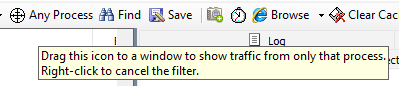 The above said, there is an "Any Processes" button on the Fiddler toolbar that can be used to filter traffic by a specific process. To use it, drag the icon to a window to show traffic from that process only.