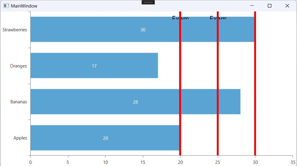 <telerik:CartesianGridLineAnnotation Value="25" Stroke="Red" FontSize="20" StrokeThickness="5" Axis="{Binding ElementName=horizontalAxis1}" Label="Example" Foreground="Black">