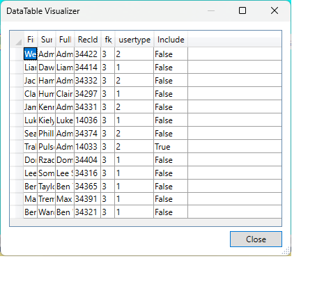 I placed a breakpoint in my code and the dataset hasn't changed, ie the "Include" field still remains set to false for all rows except that initial row. ie checking items in the list aren't being reflected in the dataset. See untitled2.png
