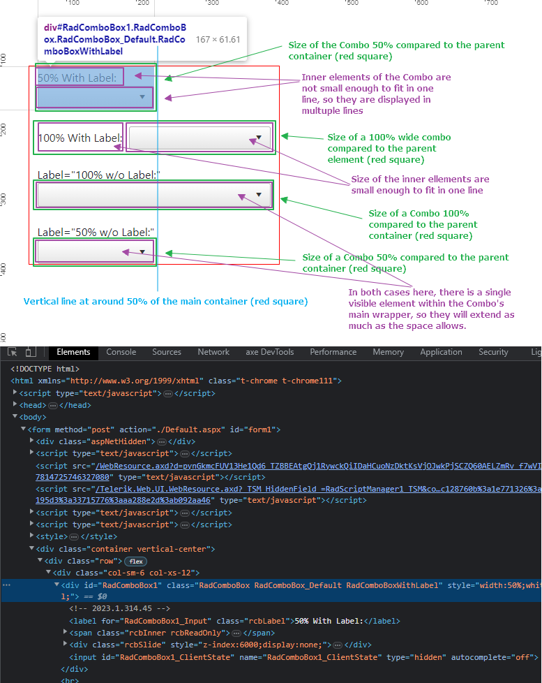 <telerik:RadComboBox ID="RadComboBox1" runat="server" Width="50%" Label="50% With
