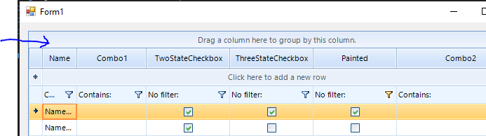 The radGridView got a area where columnheaders can be dropped. The panel has the default text: Drag a column here to group .... See also the attached image.