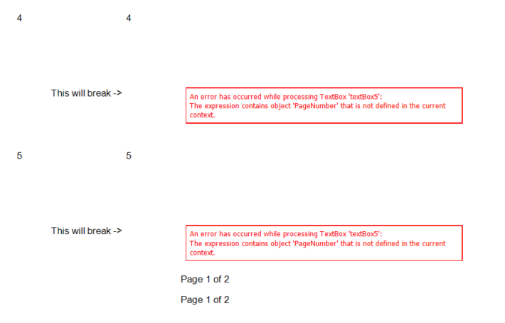 I am putting PageNumber object in Report footer section only. the attached report is giving me below error