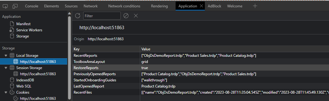 By default, information such as previously opened reports, the last opened report, etc. is stored in the brоwser's local storage but if the option the preserve open reports on exit is disabled, this information will be ignored.