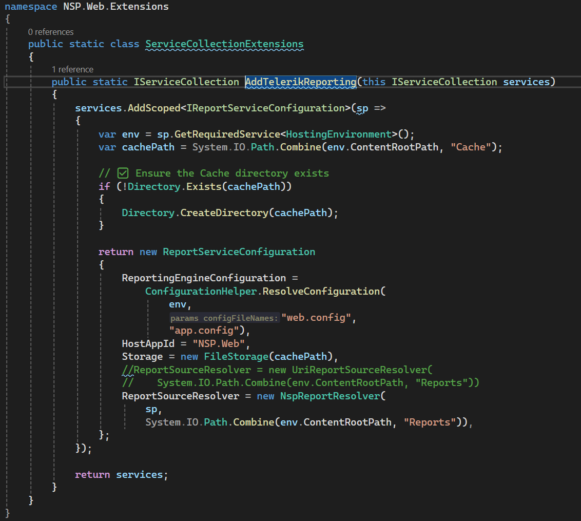 In my Startup.cs in ConfigureServices I am calling this extension method: