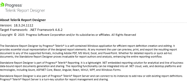 The version of Telerik.Reporting library we are currently using is 18.3.24.1112.