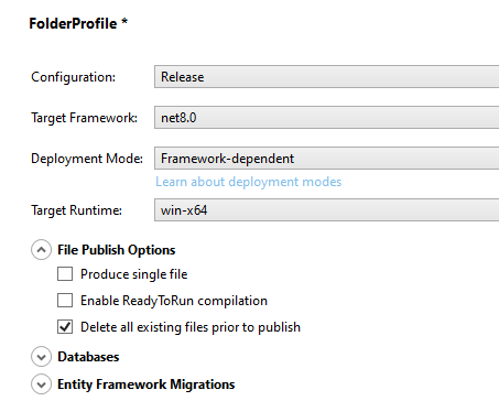 Still in Visual Studio, I have published the REST Service to a folder using the following settings:
