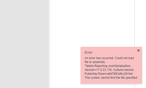 I have tried to implement a web report designer server and i have successfully implemented using nuget package. Then i tried to use signed dll files to replace nuget package. I imported "Telerik.WebReportDesigner.Services.dll" and "Telerik.Reporting.Data.Schema.Provider.dll" two dll files and it gives the report designer, but reports are not loading. It keeps showing "An error has occurred. Could not load file or assembly 'Telerik.Reporting.JsonSerialization, Version=17.0.23.118, Culture=neutral, PublicKeyToken=a9d7983dfcc261be'. The system cannot find the file specified." error. What can be the reason for this. Do you have any solution?