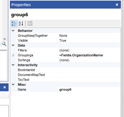 I have a report that I have populated programmatically with data. The data in the detail section populates correctly. I recently introduced a group into the report, but when I add a field (one of the detail fields) to the new group, the field is always blank. I feel like there's some missing piece to setting the group values, but I can't find any examples online that mirror my scenario.
