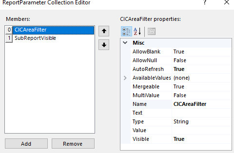 I am using the HTML5 viewer under .Net 6. I have 2 parameters CICAreaFilter and SubReportVisible.