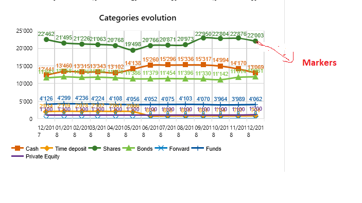 I would like to reduce the number of makers (basically I would display the makers only in the first, last, max and min values) . However, I don't want to simplify the data because that make change on the shape of line.