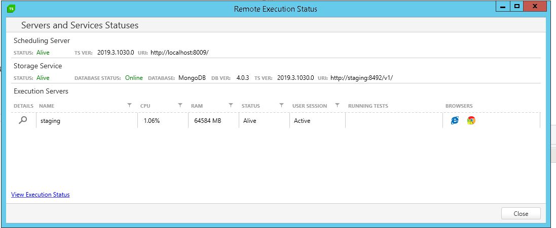 - If you open the Execution Status view, what is the state of services reported? Can you share a screenshot of this?