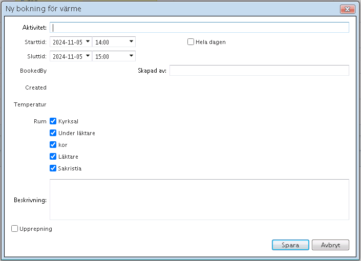 When creating an appointment in scheduler we have added three custom attributes, BookedBy, Created and Temperatur.