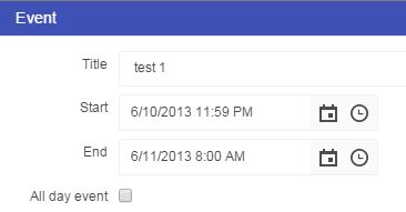 Go into the demo, create a new event that starts at 11:59 PM and runs until 8 AM the next day.
