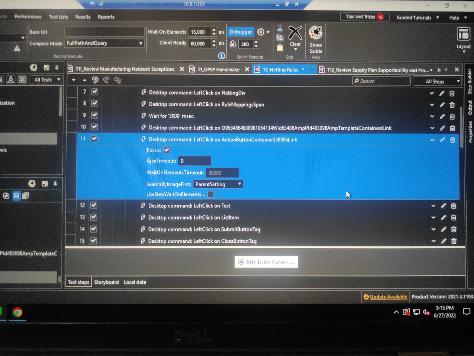 In the video the screen gets shifted to the left as we try to click on "Attribute Bases Data Management" Button. If you need to look into live execution of the test we can have meet session for that.