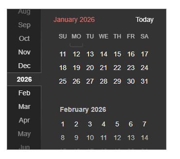 <kendo-calendar #calendarInfinite type="infinite" size="small"></kendo-calendar>Open page containing calendar componet