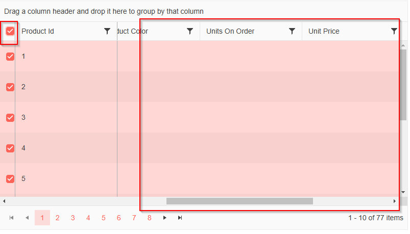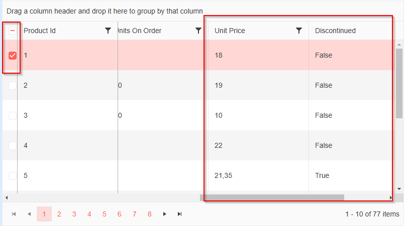 As you can see, the data is loaded successfully with a small delay, which is expected for the Column Virtualization feature. Refer to the Virtualized Columns Notes section in our documentation for more information about the specific if this feature.