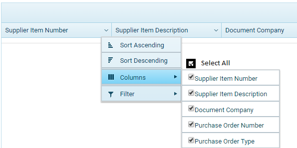 <script> function onColumnMenuInit(e) { var mylist = e.container.find(".k-columns-item>ul"); var listitems = mylist.children('li').get(); $(listitems).find(".k-link").click(function(e){ var chkBox = $(this).first("input")[0]; setTimeout(function() { if(!$(chkBox).hasClass("custom-class")){ var allChecked = $(chkBox).closest("ul").find("li.k-item input:checked").length == $(chkBox).closest("ul").find("li.k-item input").length; $(chkBox).closest("ul").find(".custom-class input")[0].checked = allChecked; } },1); }) $("<li class='custom-class'><span class='k-link'><input type='checkbox' checked onclick='checkAll(this)'/>SelectAll</span></li>").insertBefore(e.container.find(".k-columns-item>ul>li").first()); } function checkAll(el) { var checked = el.checked; $(el).closest("li").siblings().each(function (e) { if (!$(this).hasClass("custom-class") && $(this).find("input")[0].checked != checked) { $(this).find("input").click(); $(this).removeClass("k-state-hover"); } }) }</script>CSS: