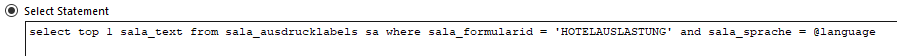 The additional step setting the result of the SQL in the language label value is necessary as the visible parameter already has an SQL source.
