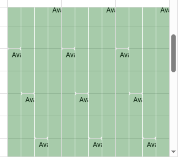 This isn't super useful as it stands so we'll investigate the tooltip idea and will likely have to enable a day view which we were hoping to avoid as users will have to click back and forth to different days. We'll also likely need to play with the CSS to make the borders a little more obvious. I appreciate the code snippets.