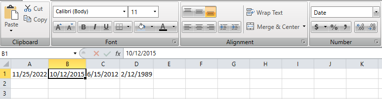 I have a CSV file with Dates ("MM/DD/YYYY"). I wish to parse these values within the active worksheet as string values, but they're converted to number format (i.e. "22532"). I'm unable to get these values in the original string format.