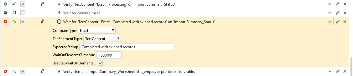 So is it right that, to achieve the goal of waiting for TextContent "Completed with Skipped Records" to appear, I need both step Time Out (in Step Properties) and UseStepWaitOnElementsTimeOut?