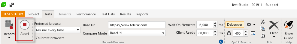 In addition, how do I stop playback of a test? Frequently while trying to get a test to work I end up landing on a page where "find element" is just not going to work. Seems a waste of time to watch 30 seconds tick off waiting for it to fail. I kill the browser. I kill the console window. It's seemingly stopped but now I can no longer run test because Run Test is disabled. What else do I need to kill? Restarting TS is the only workaround I've found.