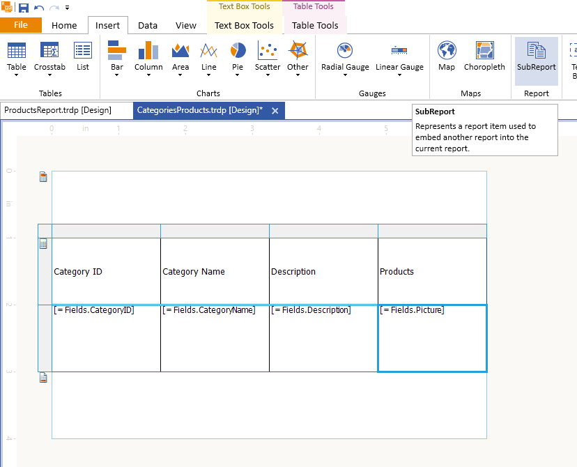8. Save the report (ProductsReport.trdp). This would be used as our sub-report