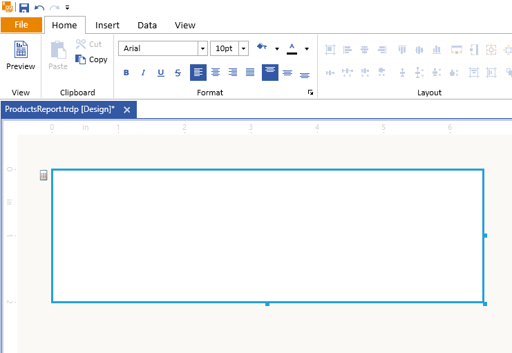 4. From the Data Explorer (on the right side), drag the ProductName and UnitPrice fields to the report's detailSection: