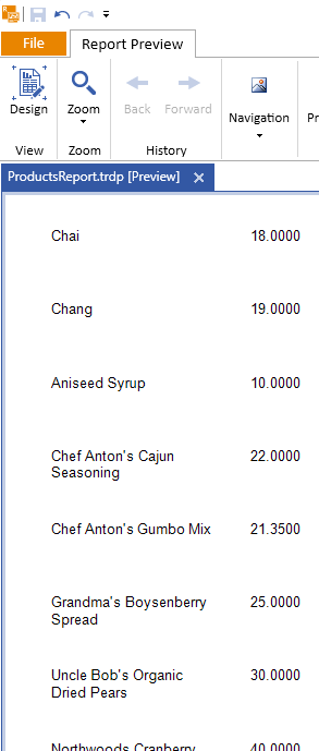 5. Preview the report to see that all Products are listed:
