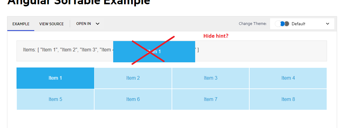 It seems that sortable has an hint: ElementRef; but no starlight forward way to configure its visibility.