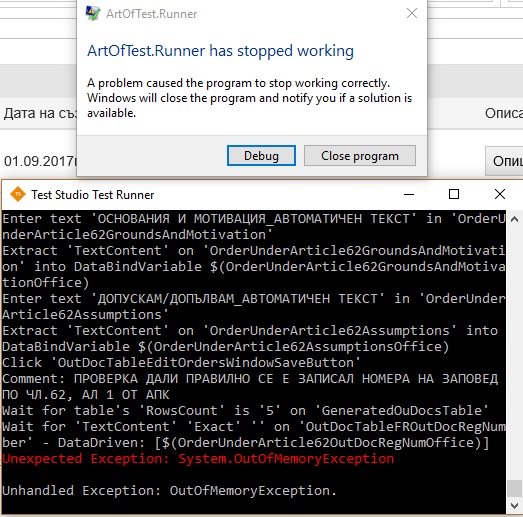 When I start Test D, the tests A, B, C, D, D', D'' are executed successfully but when runs the last test (Test D''') gives me the error System.OutOfMemoryExeption.