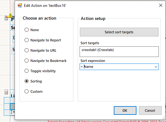 Actions CrossTab Report Designer (standalone) Report Parameters Report Viewer - Angular Sorting Table