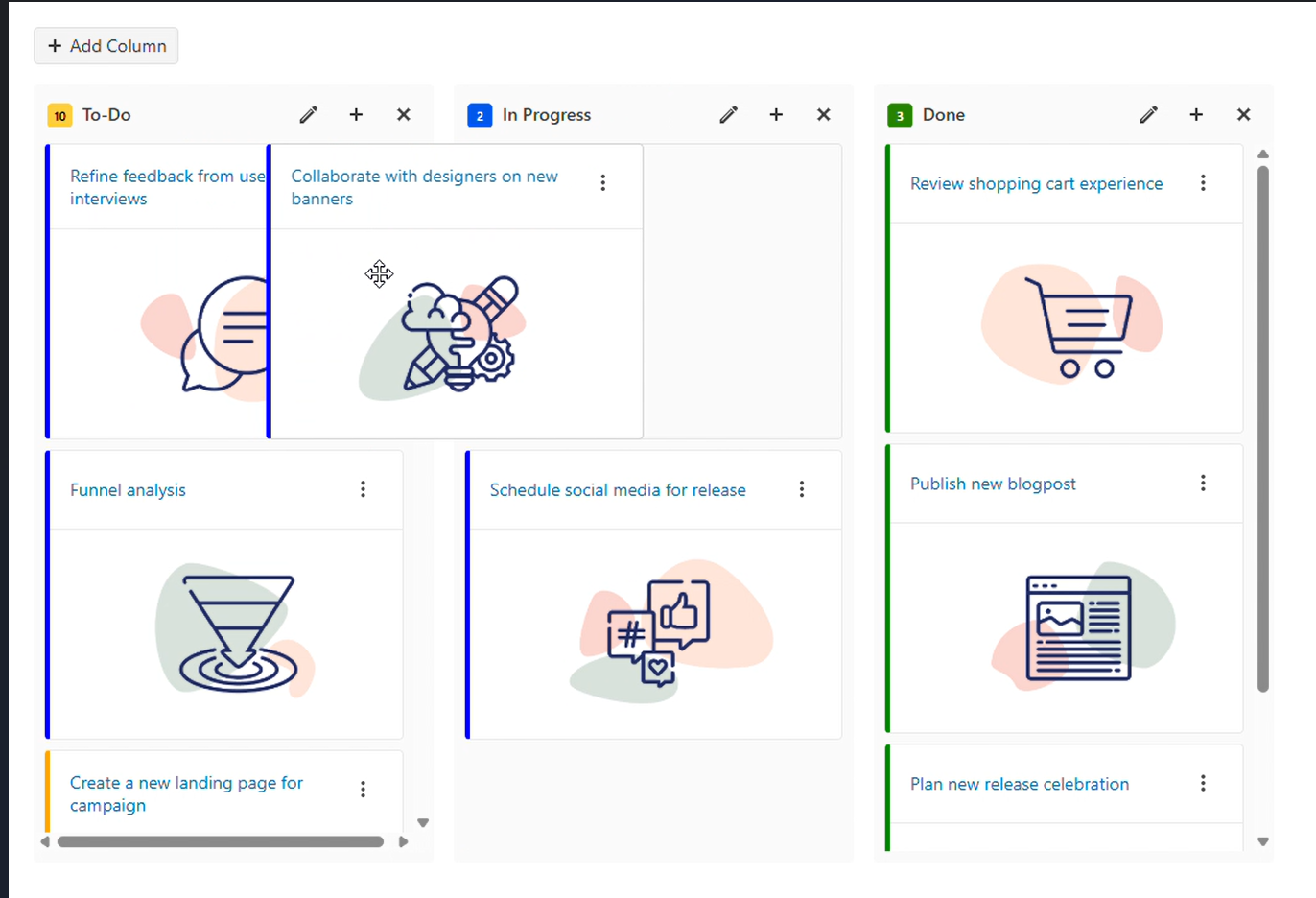 3. When dragging a card into a column that already has enough items to enable vertical scrolling, a horizontal scrollbar unexpectedly appears.