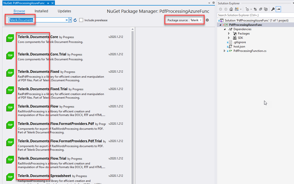 I have updated my demo code on GitHub to use the NuGet server instead, you can use that for a quick reference. Please visit LanceMcCarthy/DocProcessingFunctions.