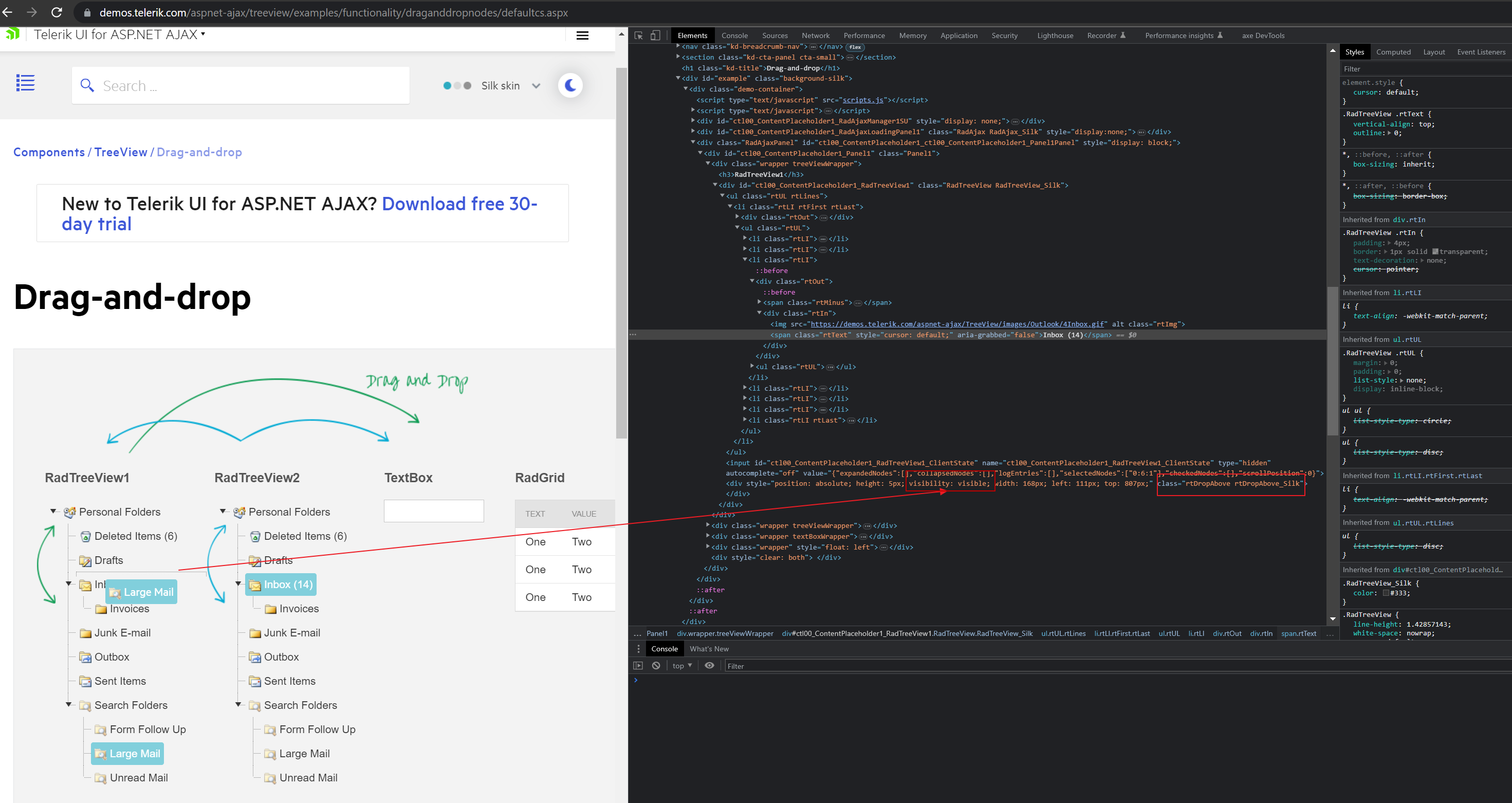 My need is that, when I drag on parent node, I do not want that dotted line (only for parent node). How can I achieve it ? Setting 'EnableDragAndDropBetweenNodes' to false or true statically in control will apply for all the items (Subitems and Parent Node). I tried setting EnableDragAndDropBetweenNodes dynamically on MouseOver event, but it still shows me the dotted line on parent node.