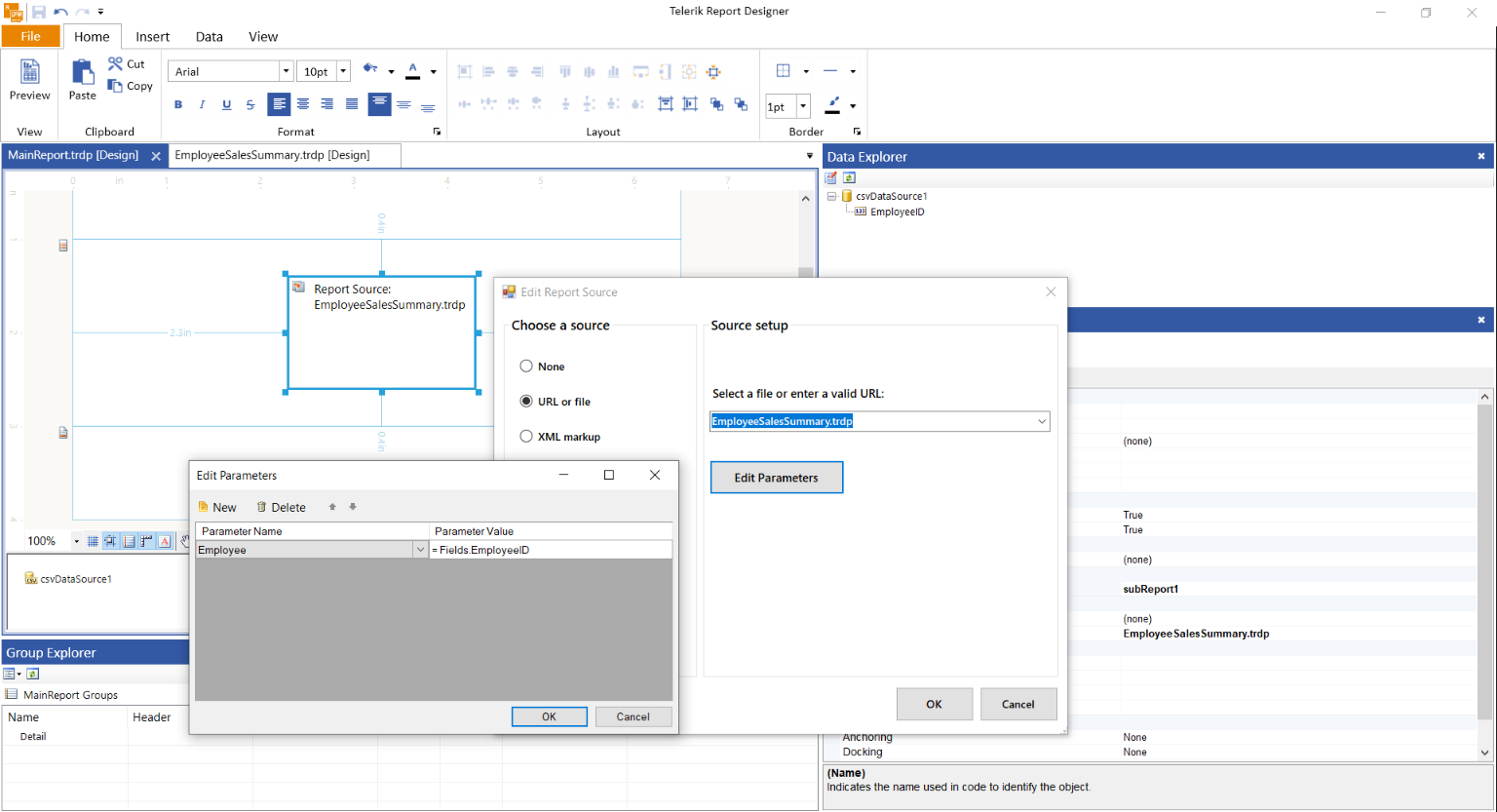For example, let's take the Employee Sales Report Demo | Telerik Reporting. This report currently displays the data for a single employee.but we can use the SubReport item to render it 5 times, each for a different employee.