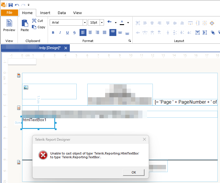 [Solved] Telerik Report Designer.NET unable to cast object of type HtmlTextBox to type TextBox