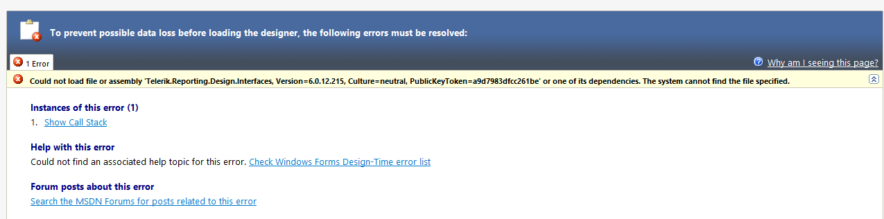 Could not load file or assembly 'Telerik.Reporting.Design.Interfaces,