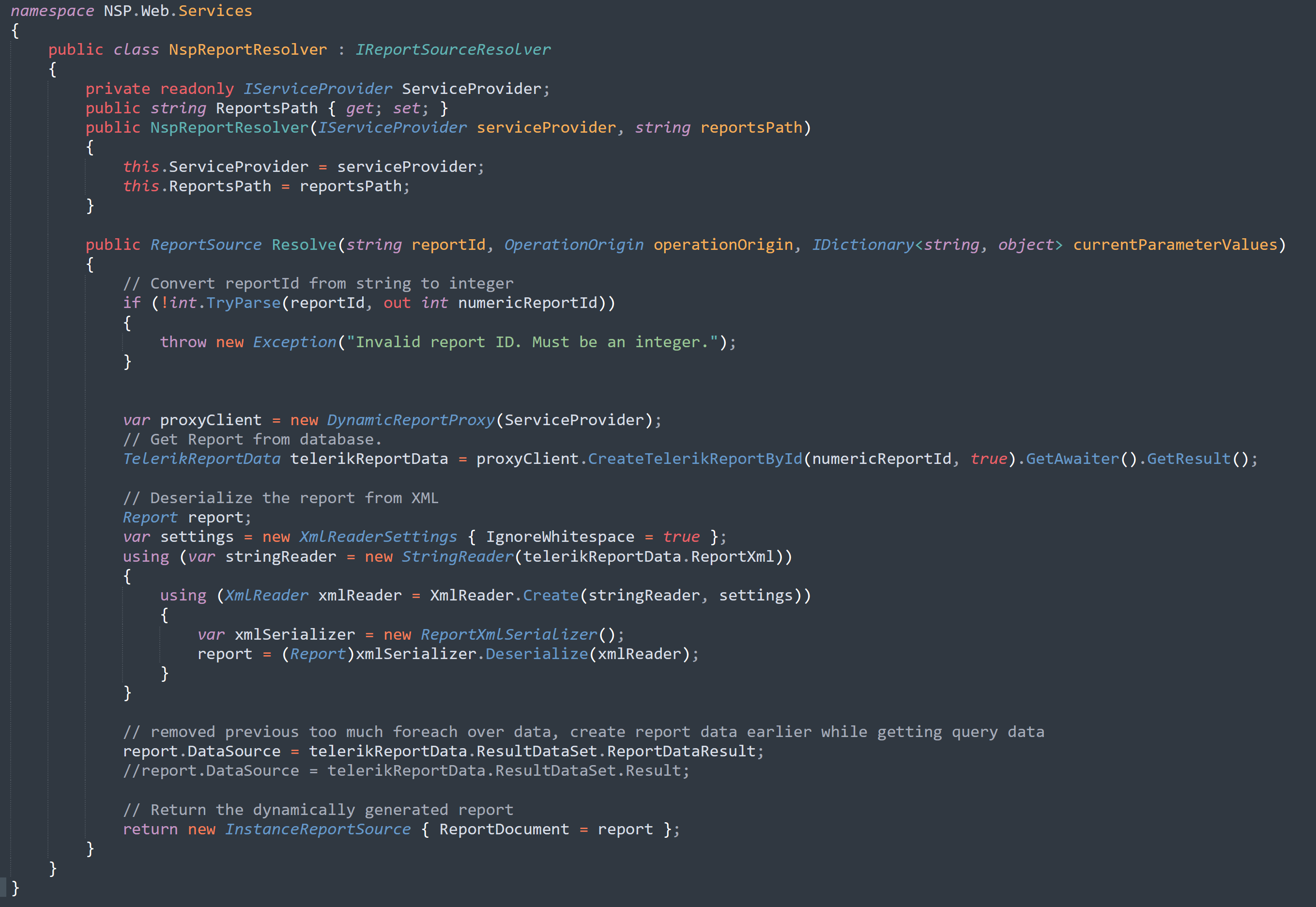I am using Kendo reporting version 2025 Q1 (19.0.25.211) in my Net Core 8 project. I am using dynamically created reports (not from any template or similar).