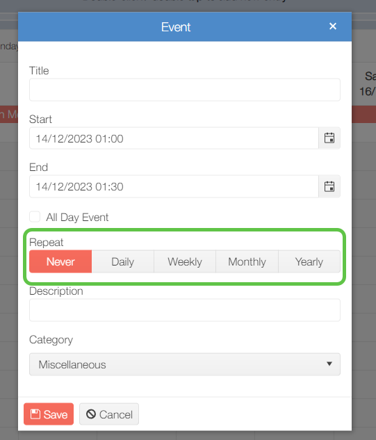 Is there any way to dynamically hide the Repeat options on the Add Event dialog? We have a scenario where some users should be able to create recurring appointments, but other users should be restricted to creating "one-off" appointments only.