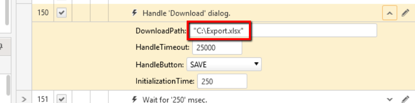You need to fix the "DownloadPath" property in "Handle 'Download' dialog.' step. Double quotation symbol - " is illegal character in Windows OS.