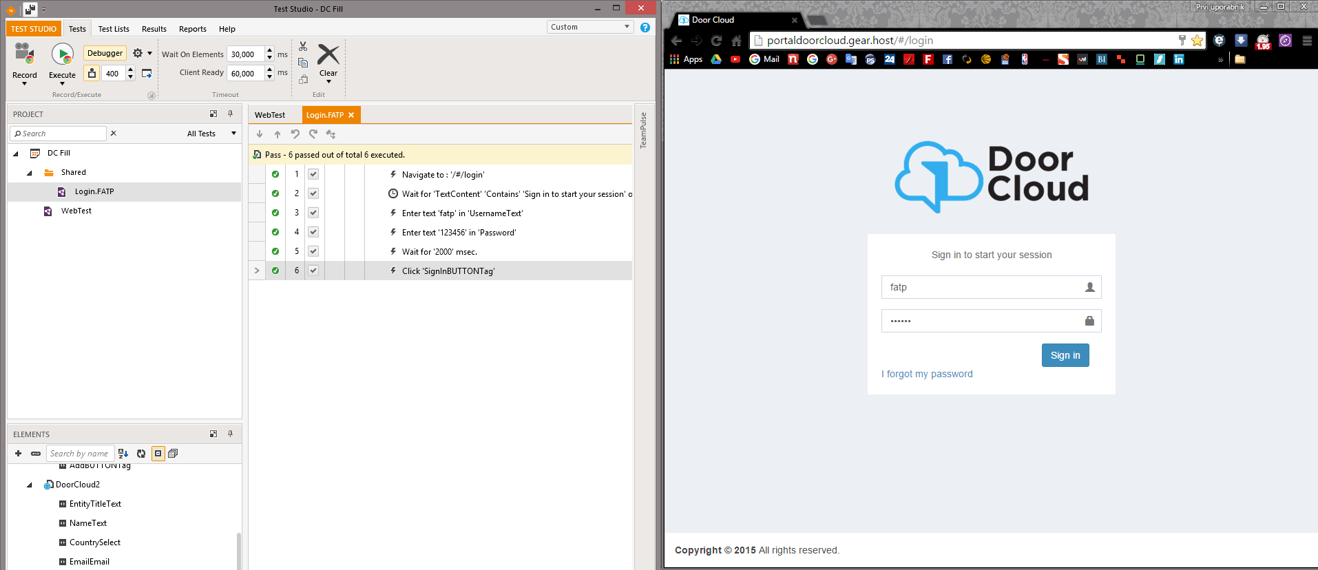 The page is functioning, because if you open a browser manually, go to the web site http://portaldoorcloud.gear.host/ and enter credentials, you can enter the application. If you try to do the same with the browser started by TestStudio, it does not work...