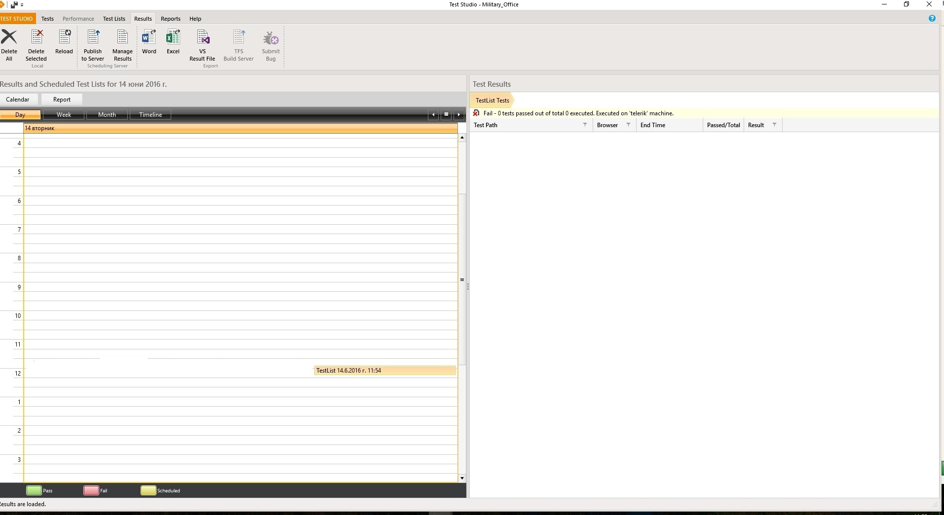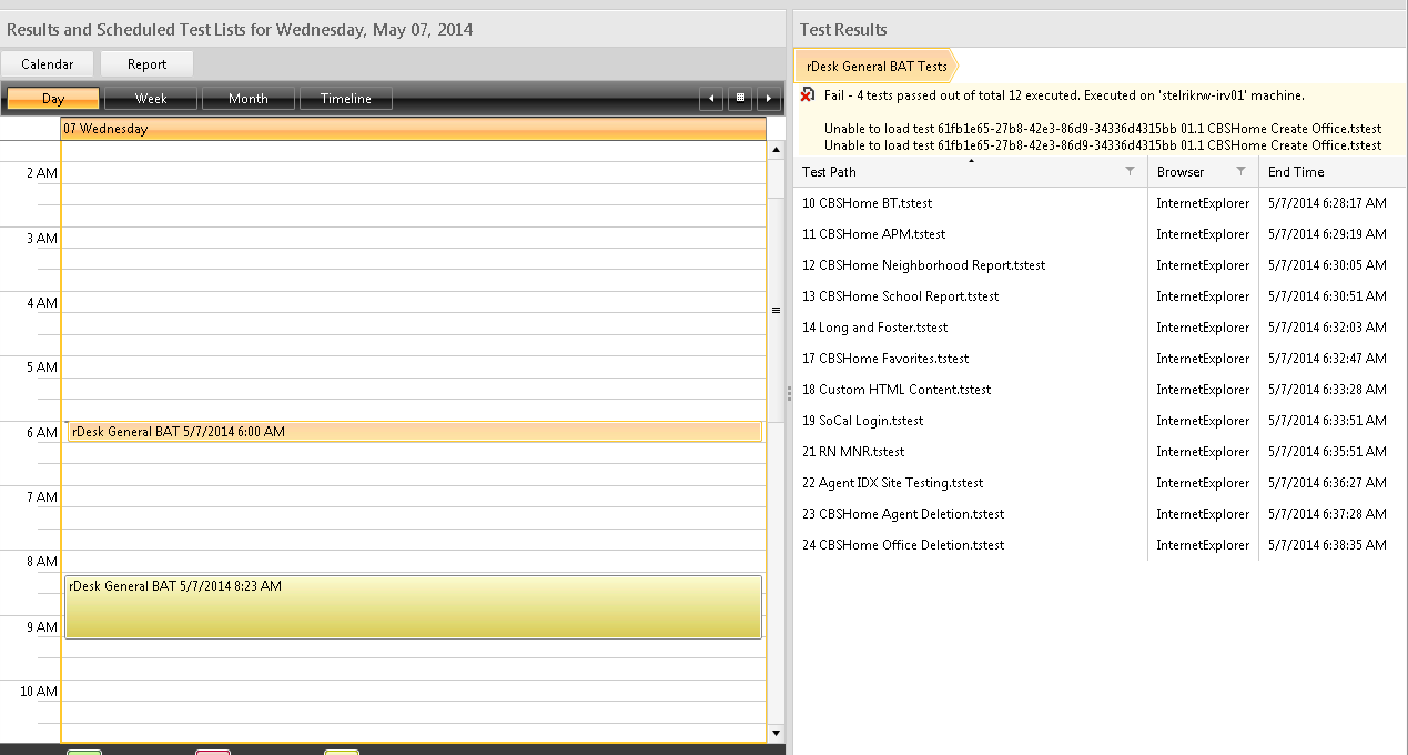 I have attached to files. A screenshot of the results page for a test that ran this morning. It shows it was unable to load some tests but it did run others. The other file is the results email with 0-0 test run.