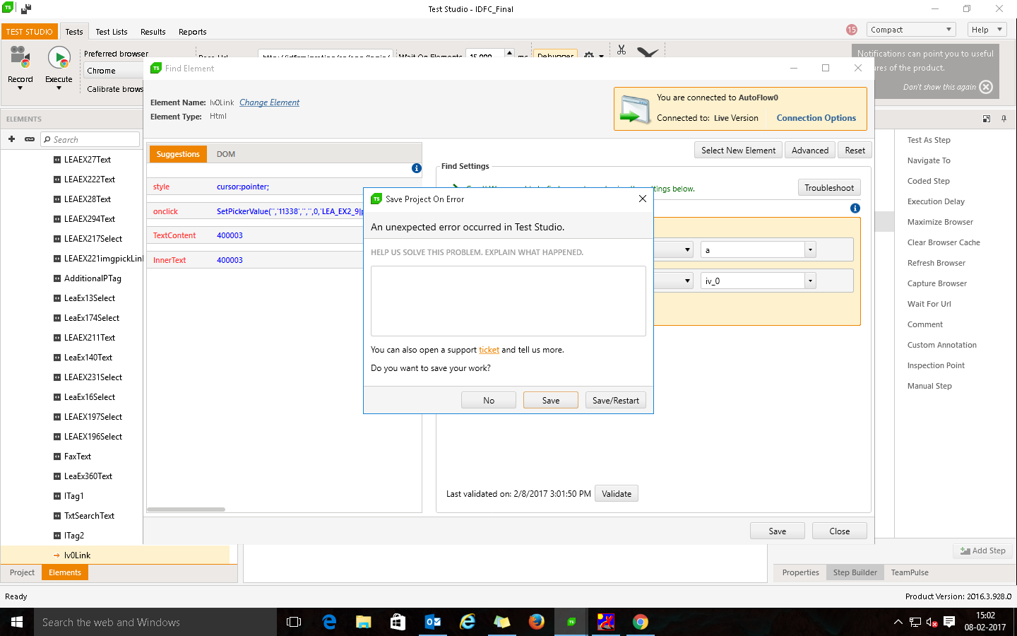4. Back in Test studio, go to the elements find the newly created element for the verificatoin.