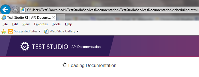 However after extracting the zip contents, when I open either the scheduling or storage.html files, the page displays "Loading Documentation..." but never seems to load the actual page content. I've tried on both IE and Firefox (thought it might have been a browser thing) but still no luck
